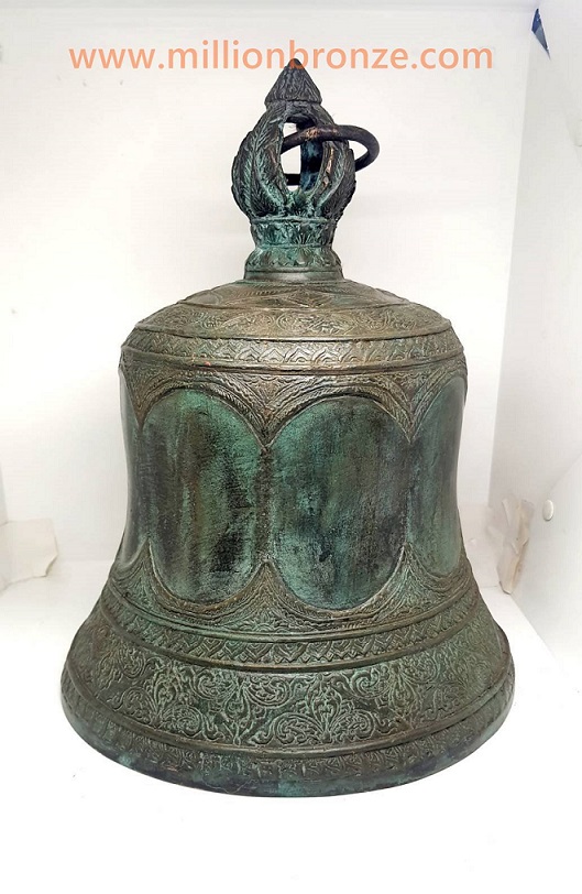 R142 ระฆังทองเหลืองลายดอกพิกุลทำสีเก่า